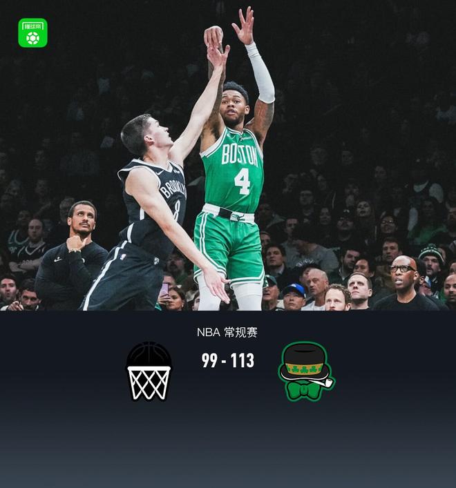 第四节篮网戴罗恩-夏普拿下4分,凯尔特人德里克-怀特拿下8分,最终篮网99-113不敌凯尔特人